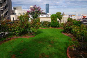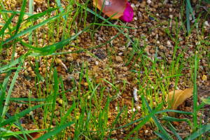 芝生の補修で、最後に種を蒔いたあたりも発芽してきました。
